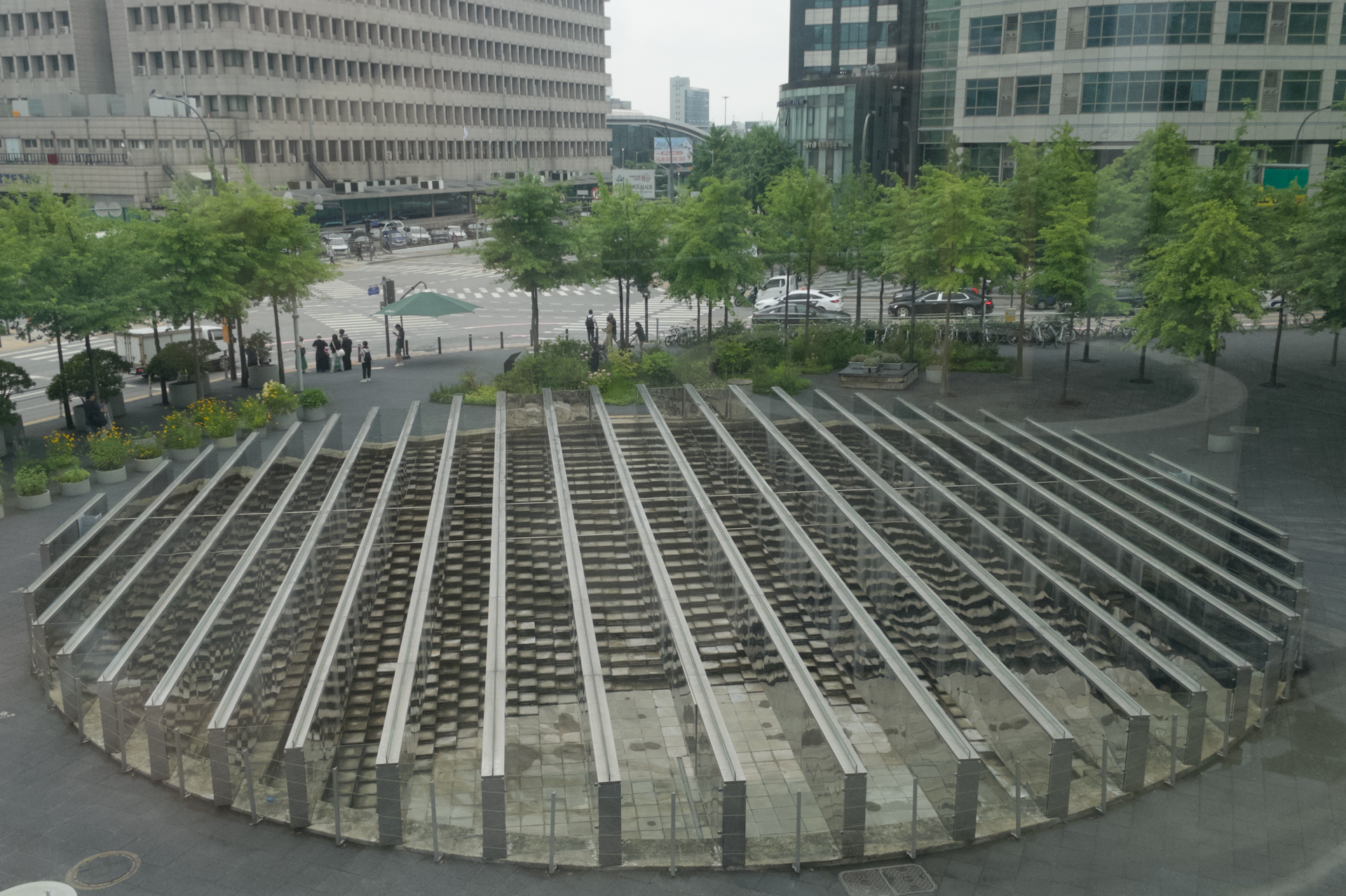 현재 종로청년숲이라는 팝업 부스를 하는 듯하나 아무도 없었음. 몇몇 어르신들이 앉아서 이야기를 나누고 계심. 천장에서 햇빛 들어옴. 실제 하늘 위 태양광을 집광해서 굴절시킨 자연광이라 한다. 바닥과 벽면은 습하지 않고 밝고, 공기는 생각보다 상쾌함. 종각역 태양의 정원은 기존 유휴 지하보도를 리모델링한 복합 공공 공간, 지하광 채광 기술과 식재 시스템을 적용해 자연적 환경을 모방한 쉼터를 조성. 시민이 자율적으로 드나들 수 있는 개방형 공간, 커먼즈적 가치-유휴 공간의 공공자산화, 시민 체류 유도 구조, 지속가능성 요소 포함, 열린 문화 기반. 낮은 스케일의 놀이 구조물, 공간의 기능을 단순 통로 → 체험·관찰 → 놀이·활동 장소로 확장. 종각역 태양의 정원은 지하 공간이 가진 폐쇄성과 기능적 단조로움을 기술과 디자인을 통해 극복한 흥미로운 사례였다. 유휴공간을 단순한 보행 통로에서 시민이 머물 수 있는 공공정원으로 전환했다는 점에서 도시 커먼즈로서의 잠재력을 분명히 확인할 수 있었다.