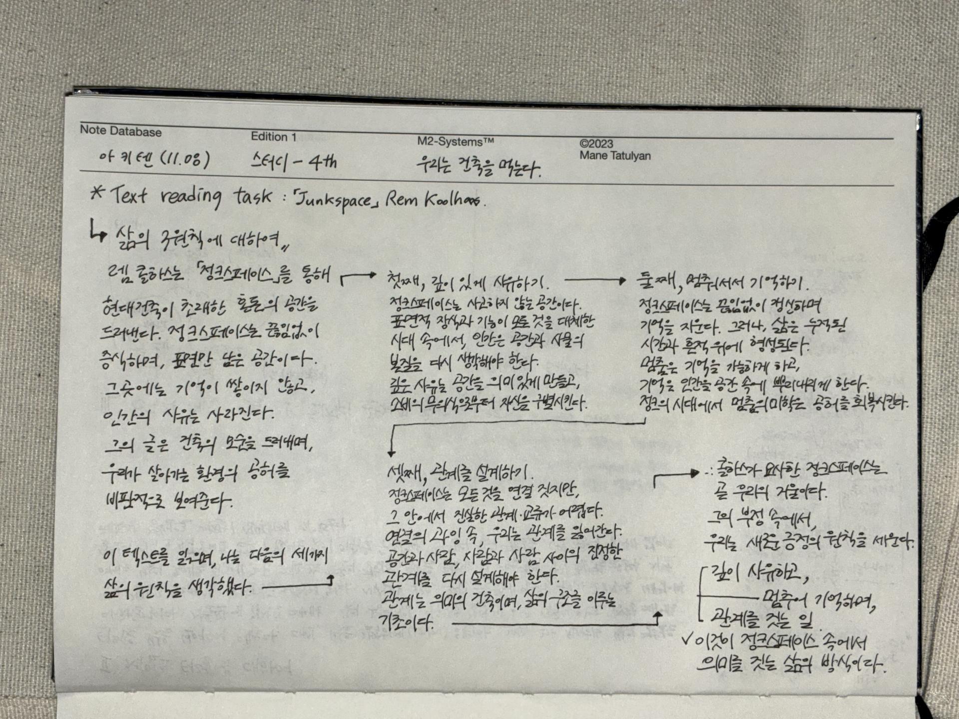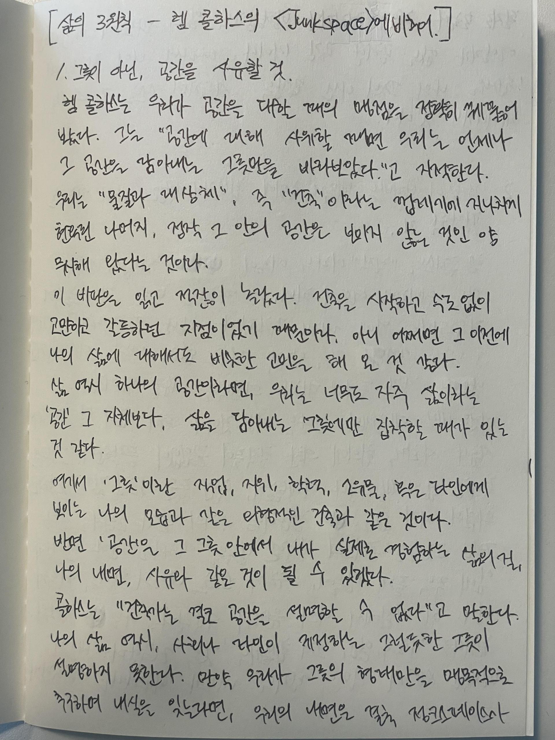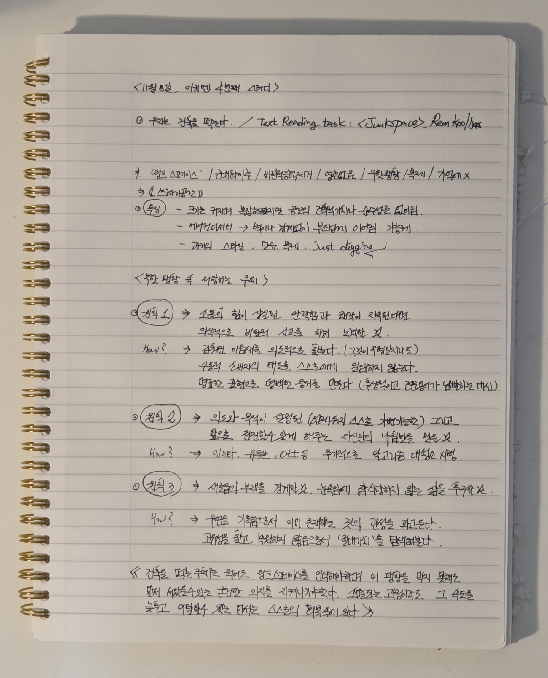 자신의 건축 식습관을 돌아보며 건축 필승 레시피-원칙-을 설정한다.