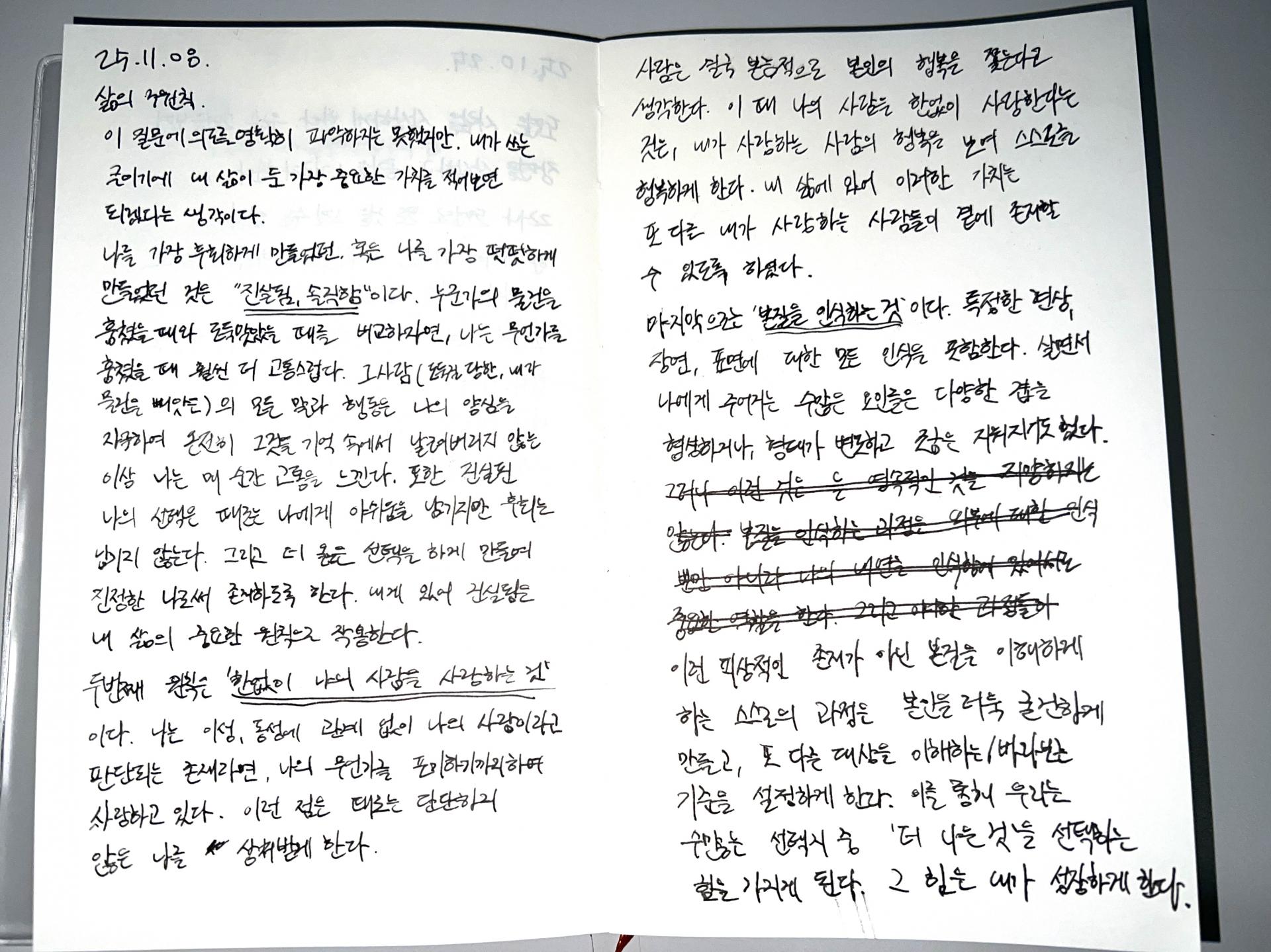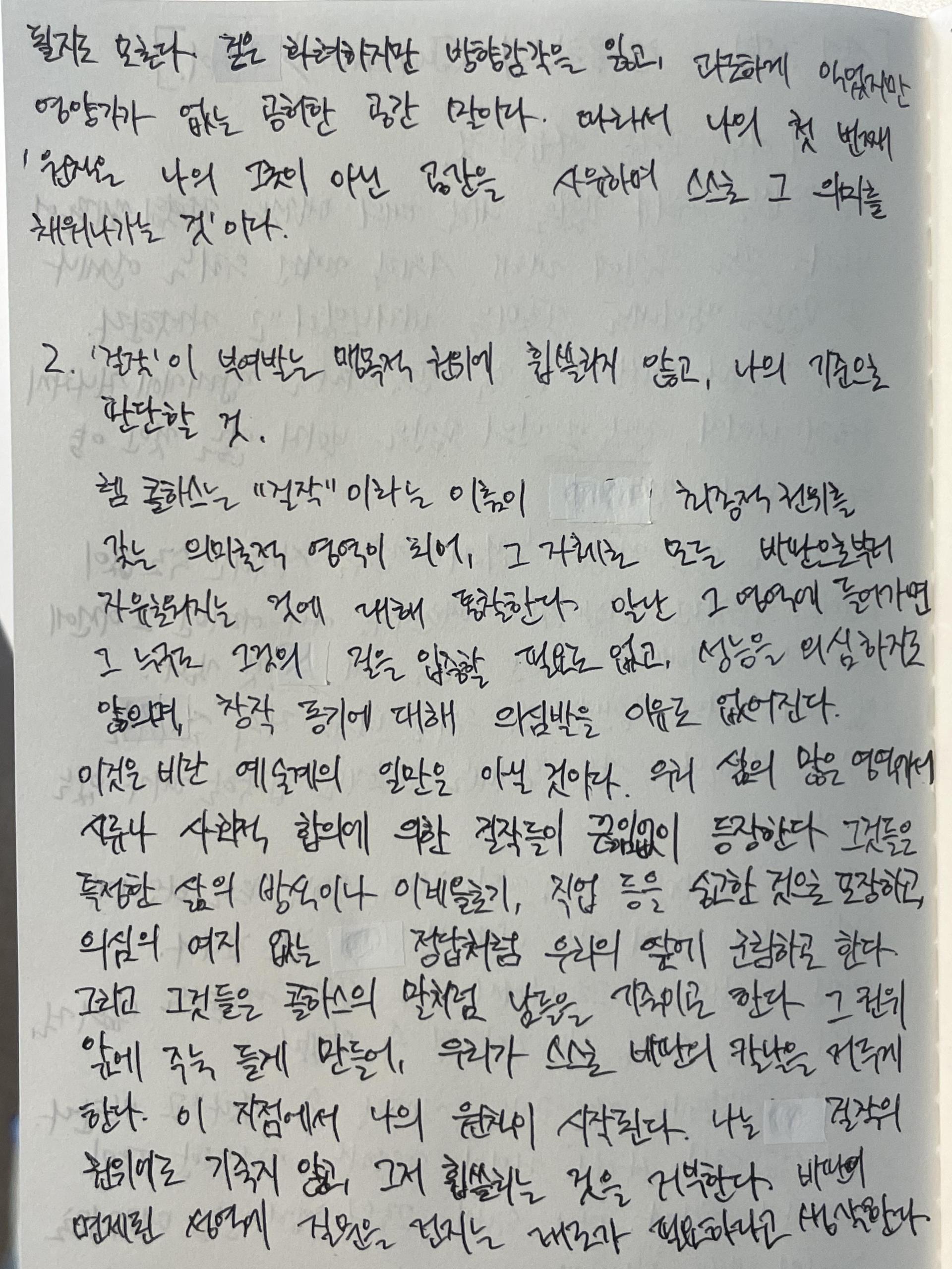 종이의 본질이 무엇인지에 대한 질문에서 출발해, 다양한 해석과 의견을 통해 본질을 찾아가는 과정을 담고 있다. 그 과정 속에서 '의식', '기준', '선택'이라는 삶의 원칙을 바탕으로 각자가 스스로의 기준을 세우고 선택하는 것이 중요하다는 메시지를 가지고, 자아가 형성되고 삶이 단단해지듯 본질을 찾아가는 여정 자체가 삶의 핵심이라는 생각을 작품에 녹여냈다.