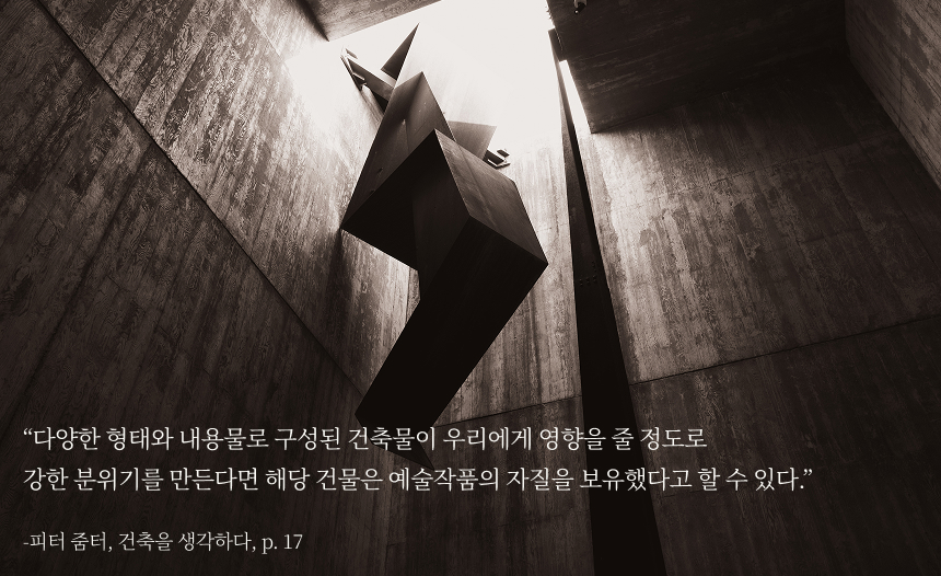 미술관에 가서 회화를 보고, 극장에 가서 영화를 보듯, 건축물에 들어가 건축을 바라보자. 핀터레스트에 흩뿌려져 있는 하나의 레퍼런스 이미지가 아니라, 하나의 예술작품으로 건물을 마주해보자. 건축은 우리를 기다리고 있다.