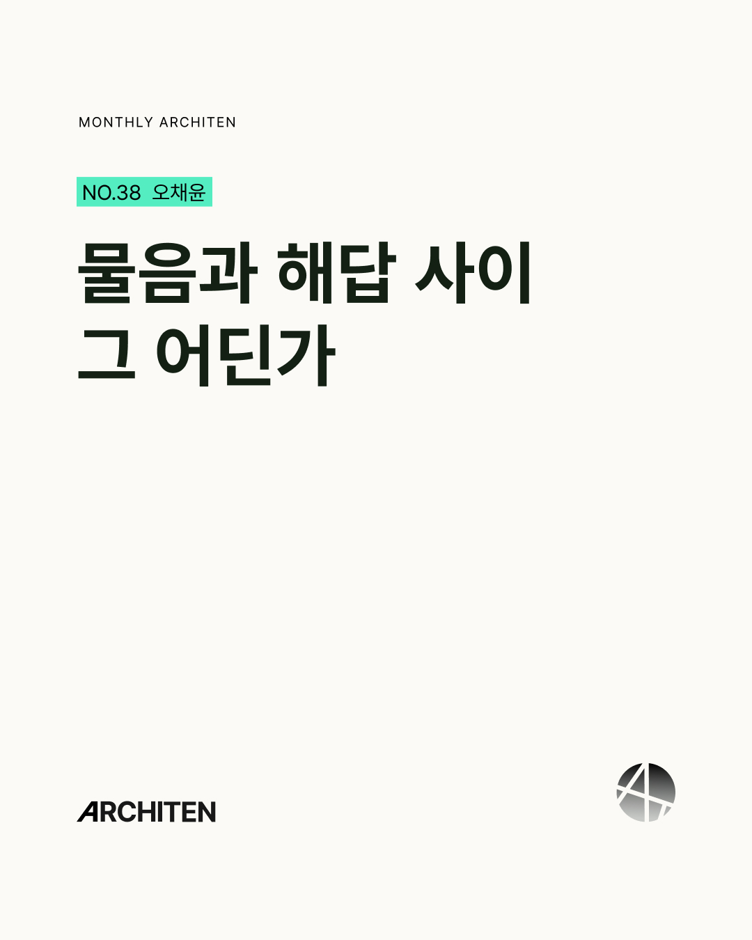 물음을 살아간다는 것. ‘건축 복수전공’이라는 삶의 커다란 물음 이후 마주한 아키텐은 그런 내게 조금이나마 삶의 방향성에 대한 해답이 되어 주었다. 무작정 설계 수업을 청강하고 돌아가던 버스 안, 날뛰는 심장박동을 느끼며 정확히 무엇인지는 모르겠지만 ‘해야겠다’고 결심한 ‘건축’이라는 것. 일단 부딪혔지만 그 너머의 길은 보이지 않던 그때, 의외로 삶의 힌트를 던져준 것은 아키텐이었다.
